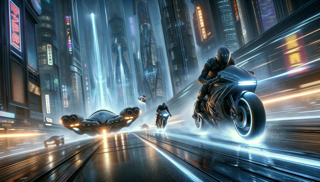 I turned my bike around and drew my P20-Hawk and fired on the hover car.