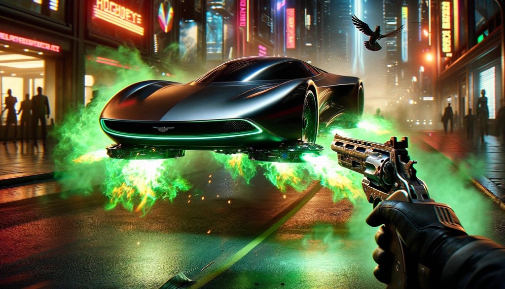 I watched in surprise as the hover car caught on fire with green flames and then a second later exploded. “Holy shit! What the fuck?!” That was unexpected. Where the fuck did those green flames come from?