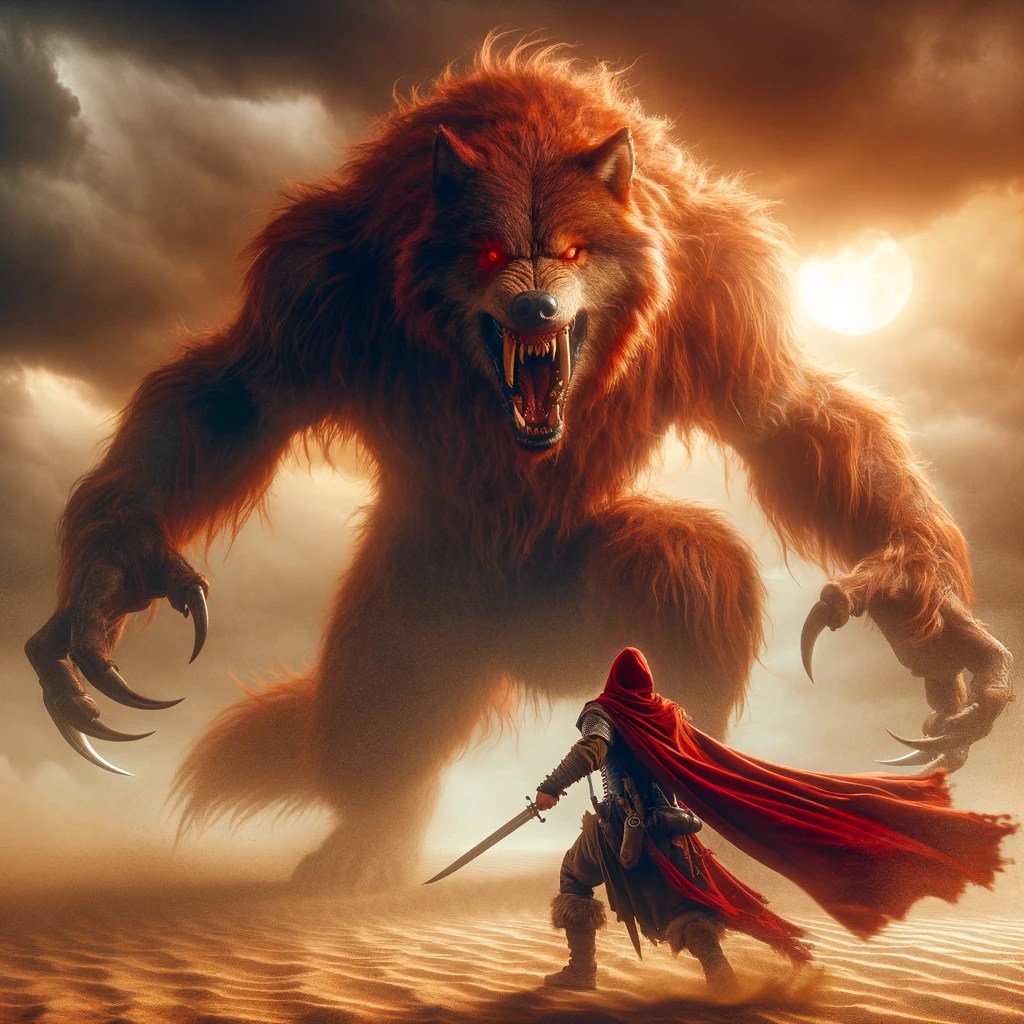 I blasts of sand woke me up from my slumber as I came into back existence of physical mortal form of man. I heard the snarl of a beast. Anger and fear raced inside of me as I got to my feet and faced off against a giant wolf-like creature with intelligence in his wild eyes faced off against me in the desert of a foreign world I notion for where it was or how I had gotten here.