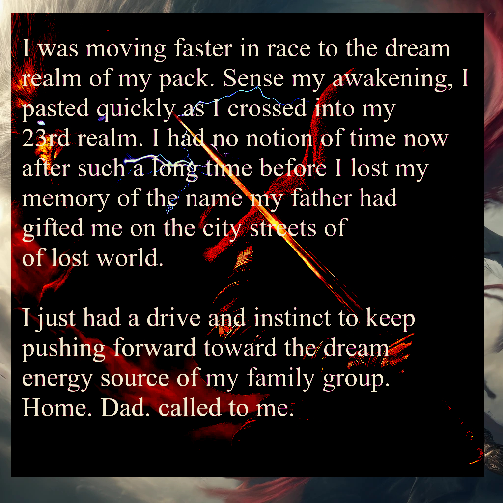I found a power there and knowledge of a combat technique I had learned from someone once a very long time along. The impulse to act and fight worked as lightning element stroke out from my blade and hit the Claw Breed’s body striking him down and sending him into a deminsional storm. A key of memory unlocked in my mind as I reached for my power and pushed on.
