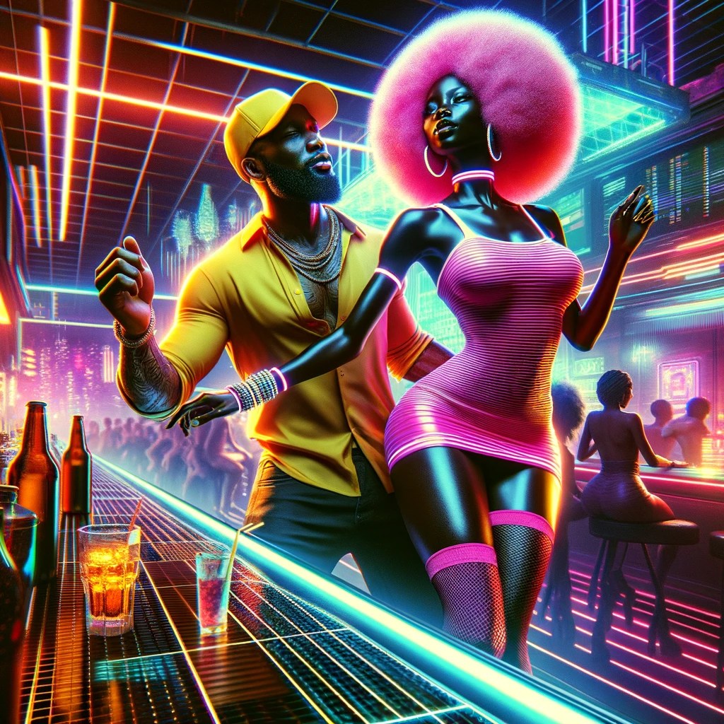 I watched as Bee spun in a circle to the music changing clothes in a glow of white energy and looking even more sexy. We flowed into the dance. “I’m Fatty.” I said close to her ear.
